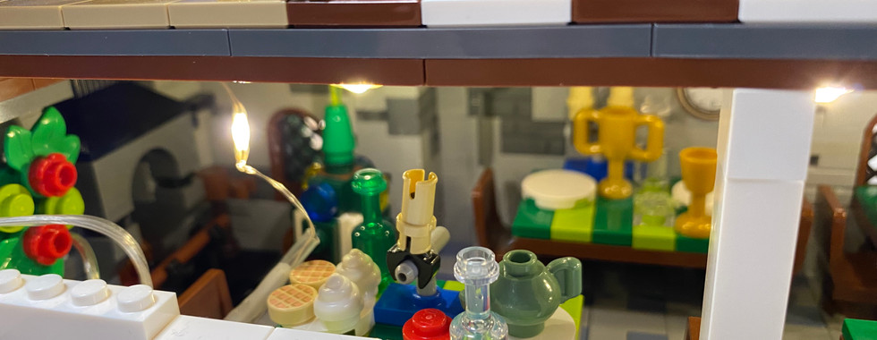 Het bouwwerk is nog even in onze winkel te bekijken, het zit vol met leuke details en de lichtjes maken het geheel natuurlijk af!